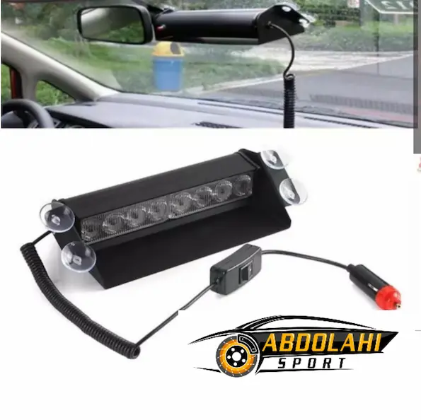 چراغ پلیسی رو داشبوردی 8 ال ای دی با برق 12ولت کار می کند.