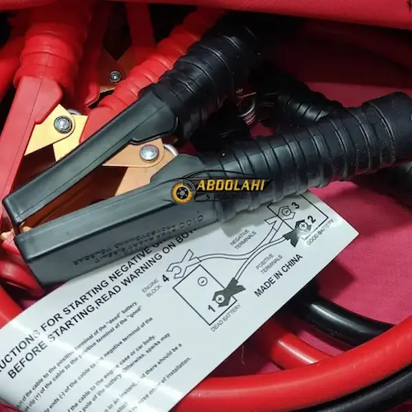 گیرههای فلزی مقاوم با روکش عایق در دو سر کابل قرار دارند که اتصال مطمئن به قطبهای مثبت و منفی باتری ایجاد میکنند.